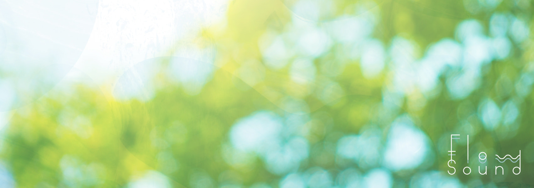 「FlowFlow Sound」は、陽光を反射してキラキラと光る透明感のある薄い水色、緑の大地を滔々と流れゆく清流のせせらぎを想起させる心と魂に響くサウンドスケープ。